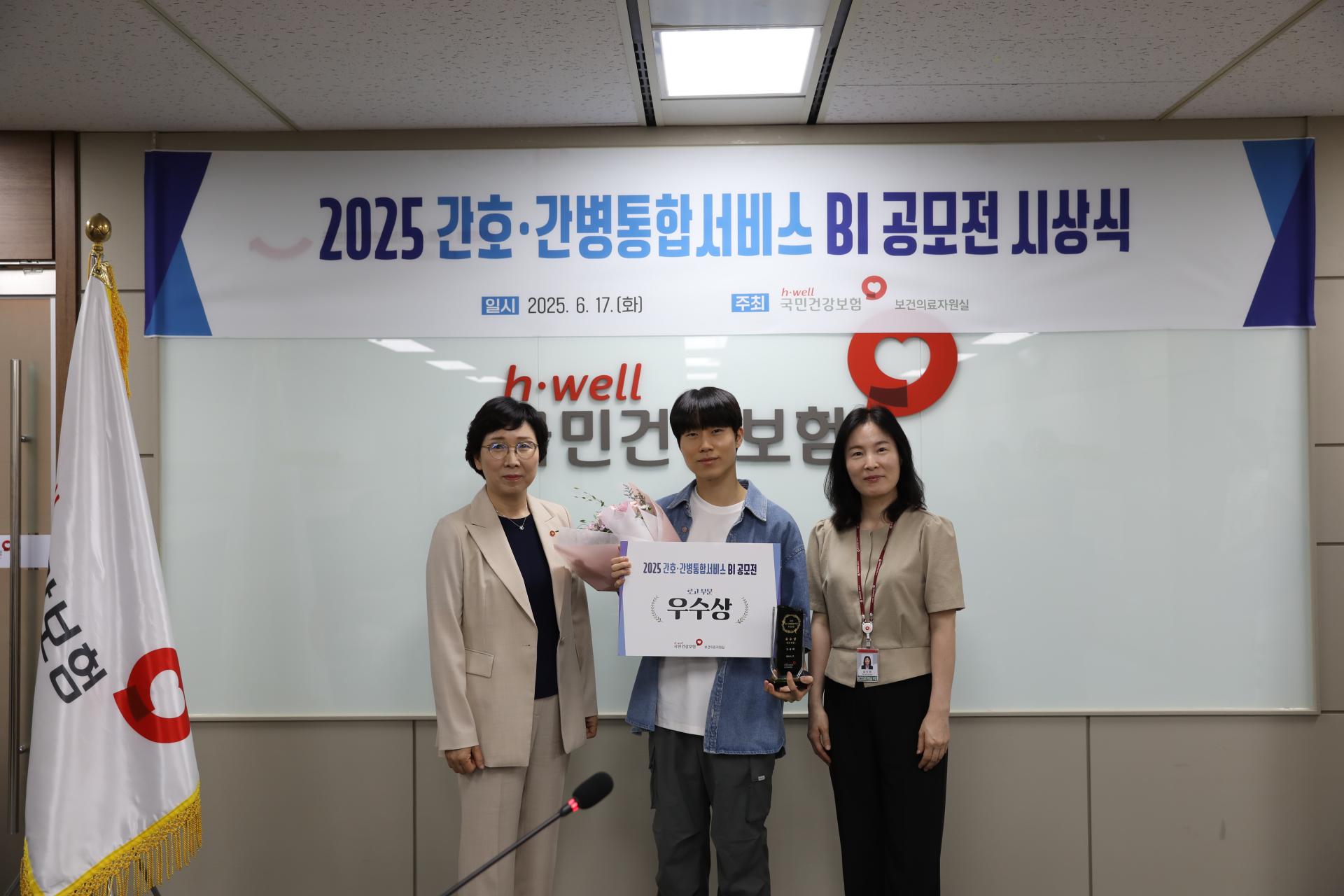 국민건강보험공단(이사장 정기석·이하 건보공단)은 17일 국민건강보험공단 서울강원지역본부 스마트룸에서 공모전 수상자와 건보공단 관계자 등이 참석한 가운데 ‘2025 간호·간병통합서비스 브랜드 아이덴티티(BI) 공모전 시상식’을 개최했다고 밝혔다.